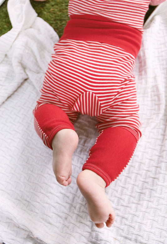organic merino wool and cotton baby and toddler tights - red/natural stripe and navy/natural stripe,