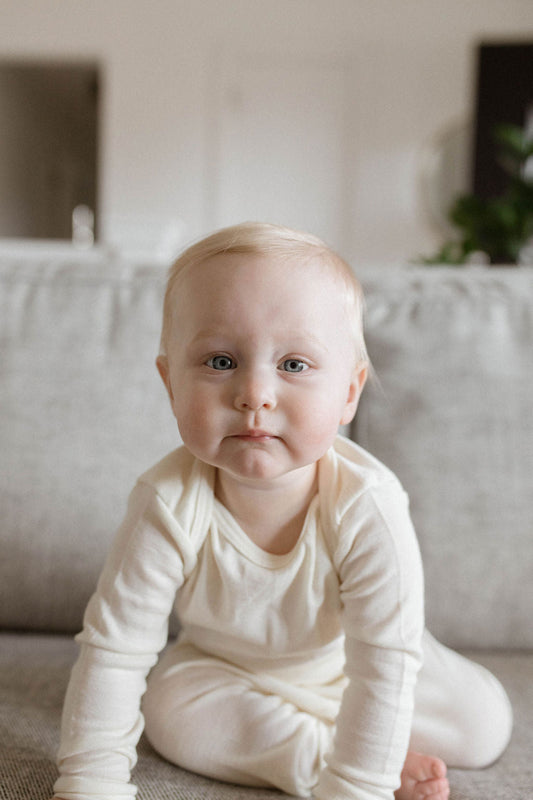 organic merino wool and silk long-sleeved onesie in natural - baby/toddler