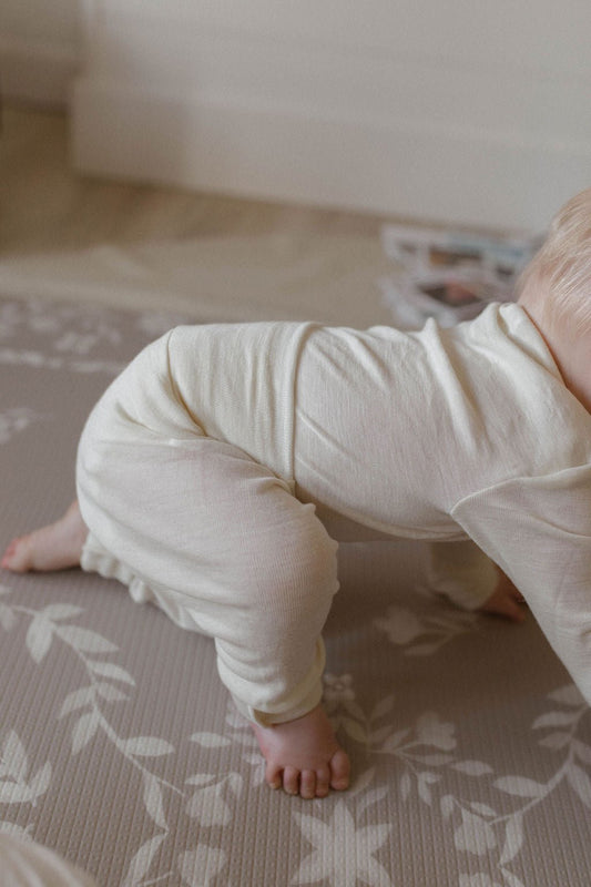 We quickly discovered that the luxuriously soft organic Merino wool + silk pieces brought to us from Europe were what our children felt most comfortable in - day and night. They were not only so soft, but they stayed cleaner for longer, we didn’t have to spend as much time doing washing, and they could be worn year-round because the fabric keeps you warm in winter and cool in summer. It felt like magic!!